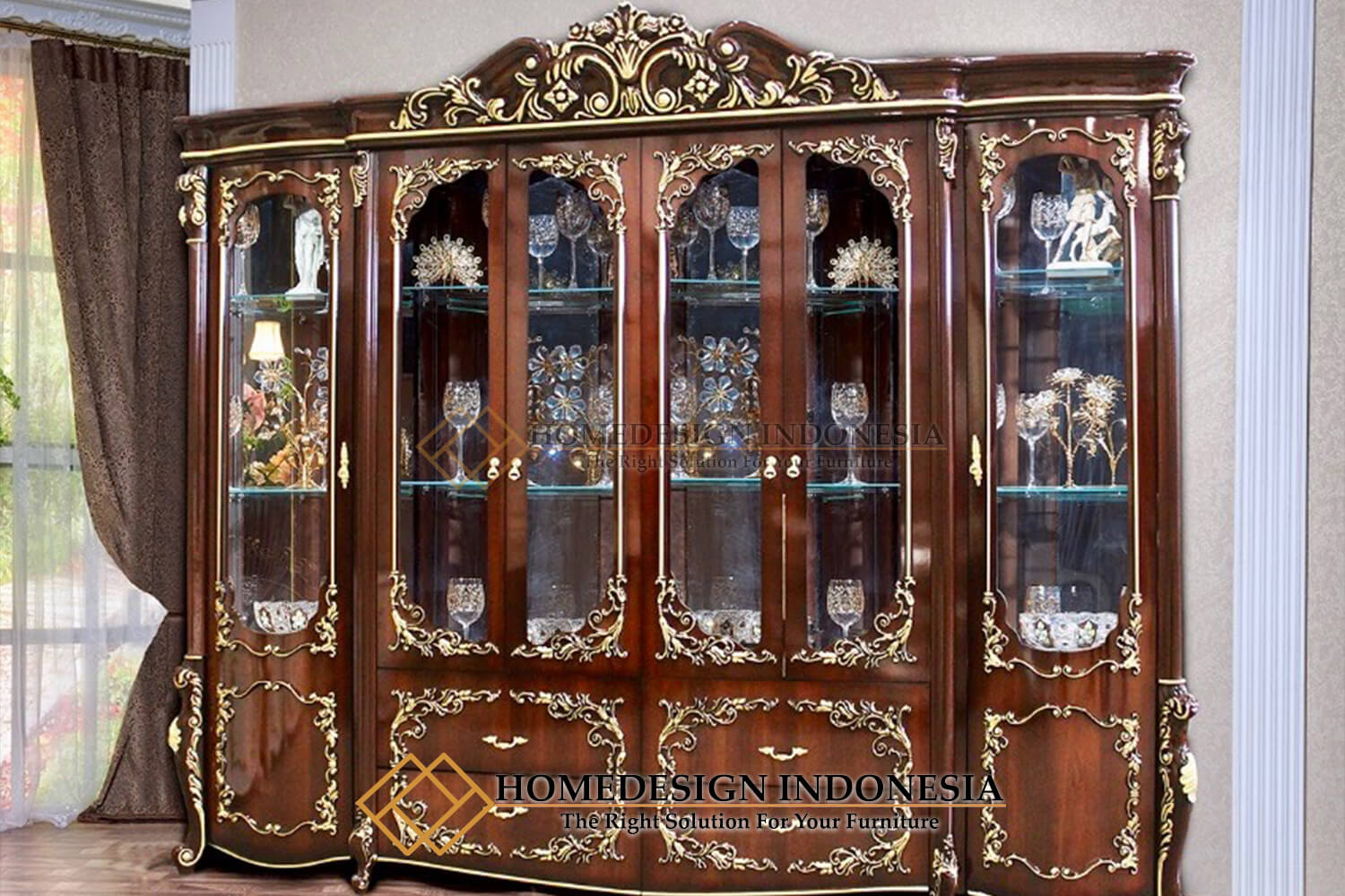 Harga Lemari Hias Mewah Kaca Kayu Jati Luxury New Furniture Jepara HD-1224