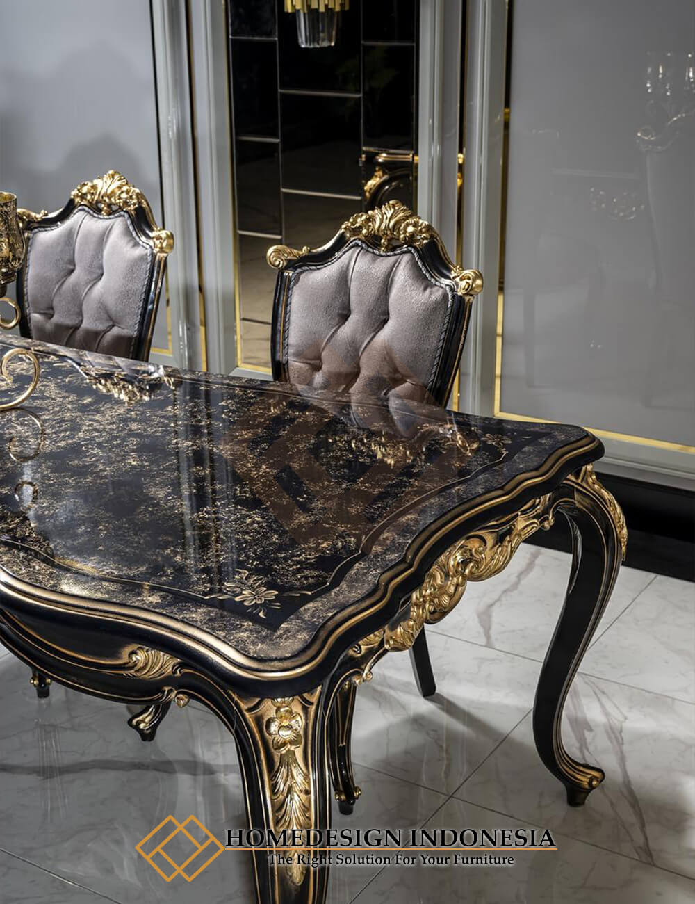 Harga meja makan jepara mewah top marmer nero best sale HD-1761 merupakan produk terbaru menambah cantik ruang makan anda.