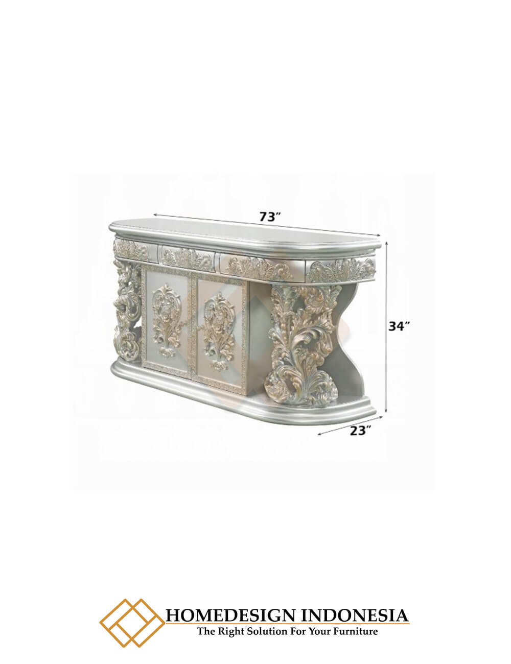 Meja Konsul Mewah Silver Champagne Ukiran Relief HD-1769.1