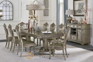 Meja Makan Mewah Klasik Luxury Champagne Color Carving HD-0913
