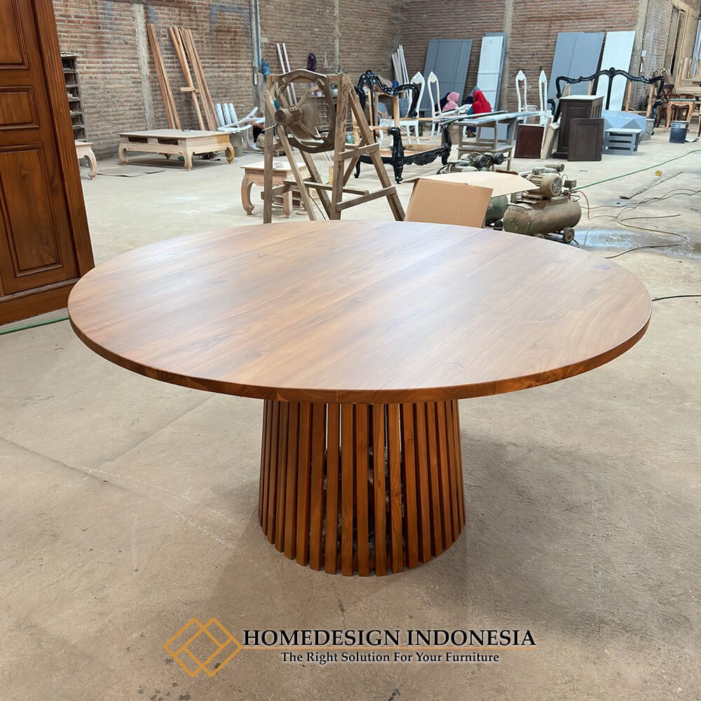 Meja makan minimalis bundar jati best sale HD-0998 dengan desain yang menawan yang akan menambah indah ruang makan anda.