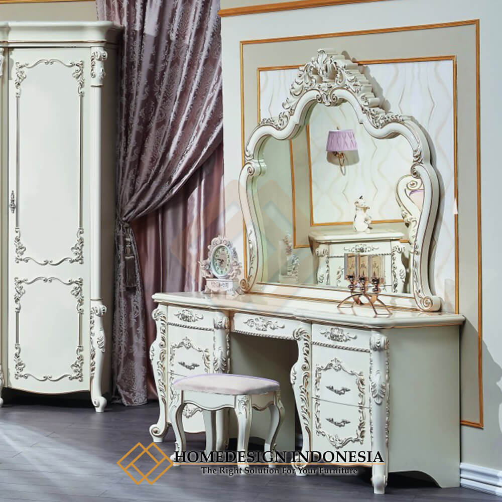 Model meja rias mewah putih solid duco luxury carving HD-1752 dengan desain yang menawan akan menambah indah interior anda.