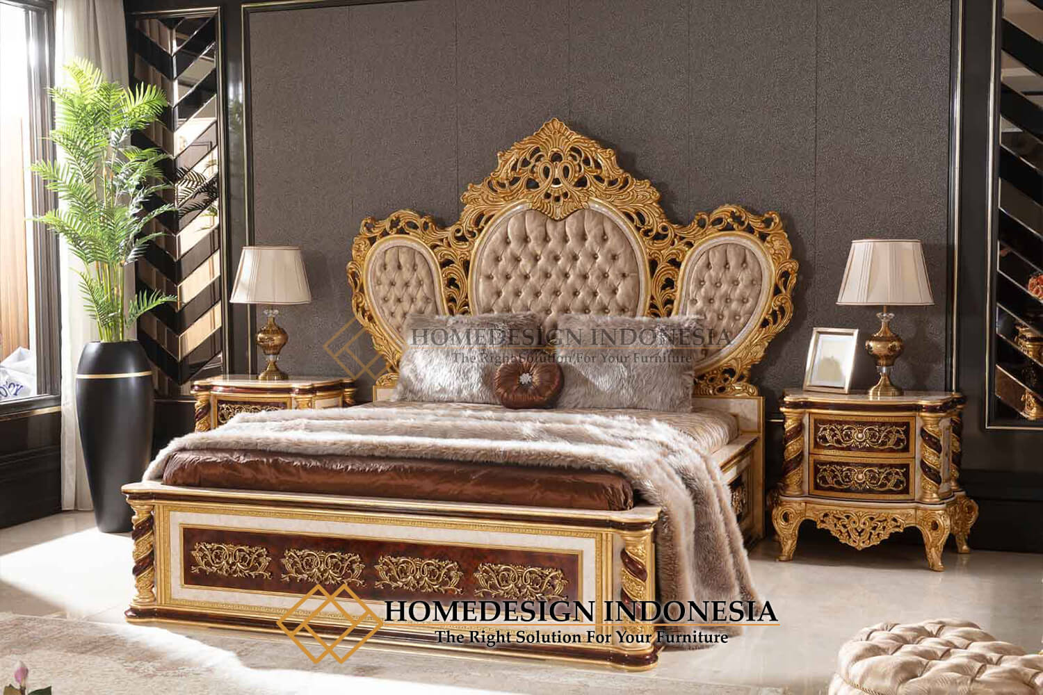 Set Tempat Tidur Mewah Gaya Kerajaan Luxury Golden Glossy HD-526