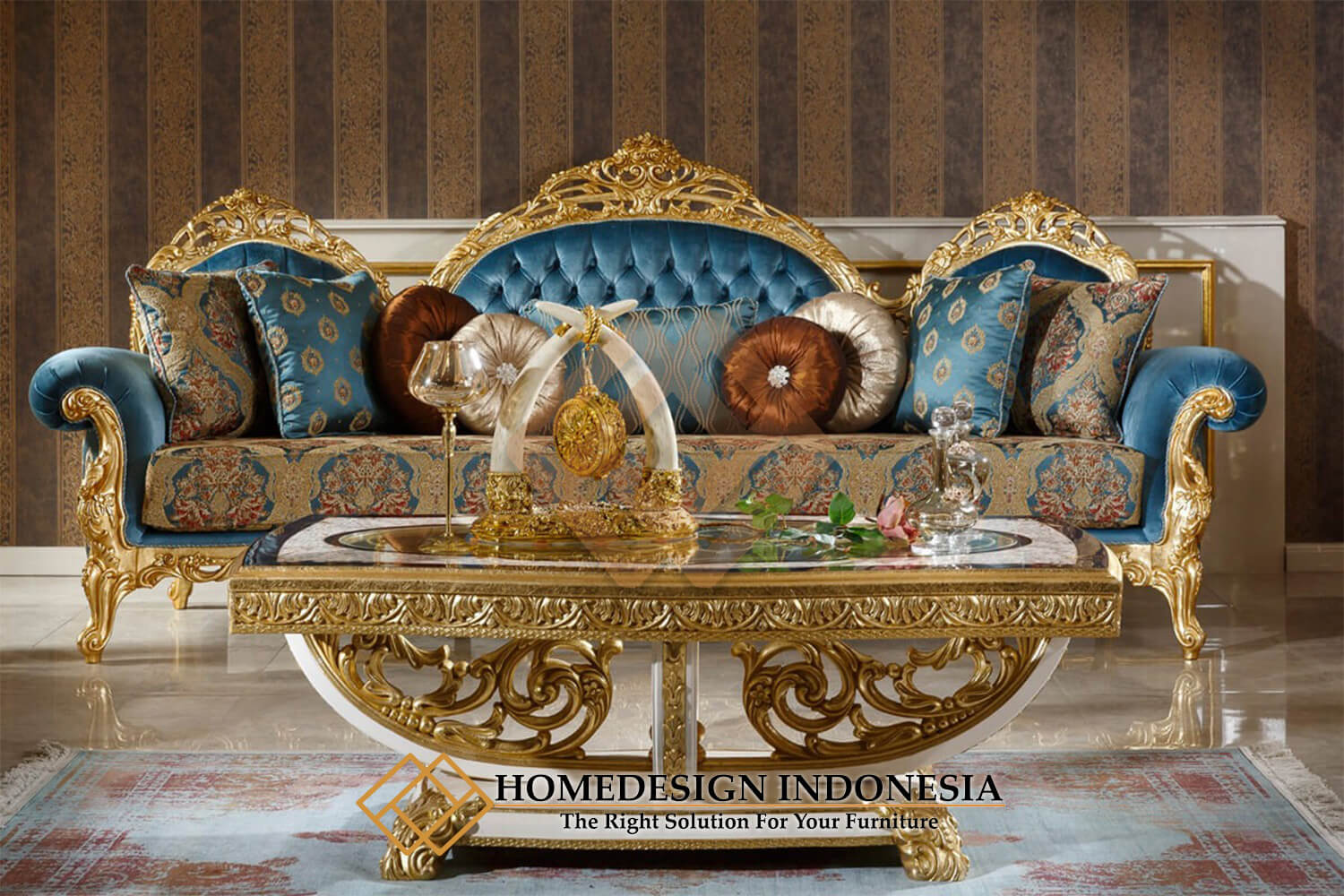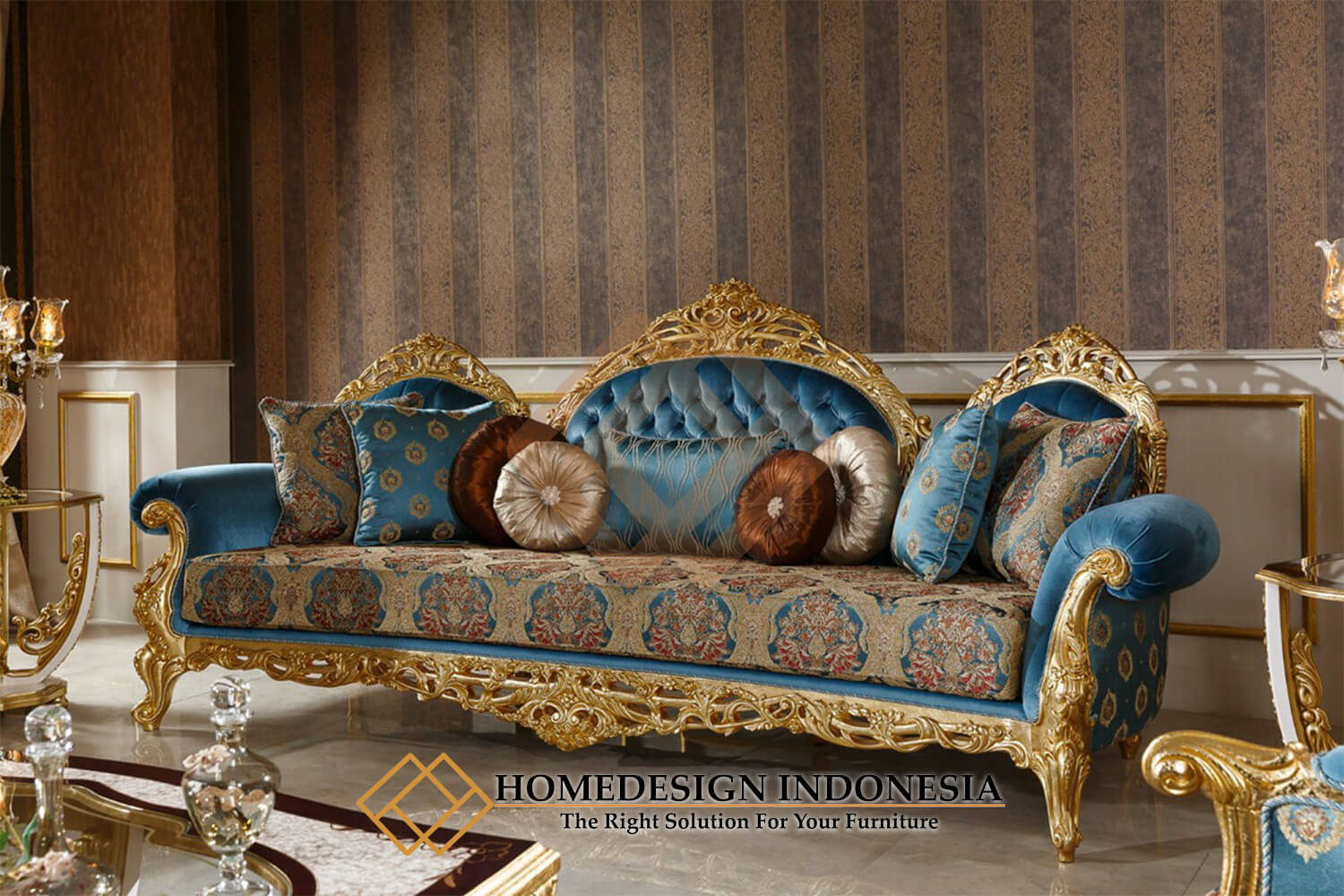 Sofa tamu mewah jepara lois gold design HD-1588 dengan desain yang menawan akan menambah indah ruang interior anda.