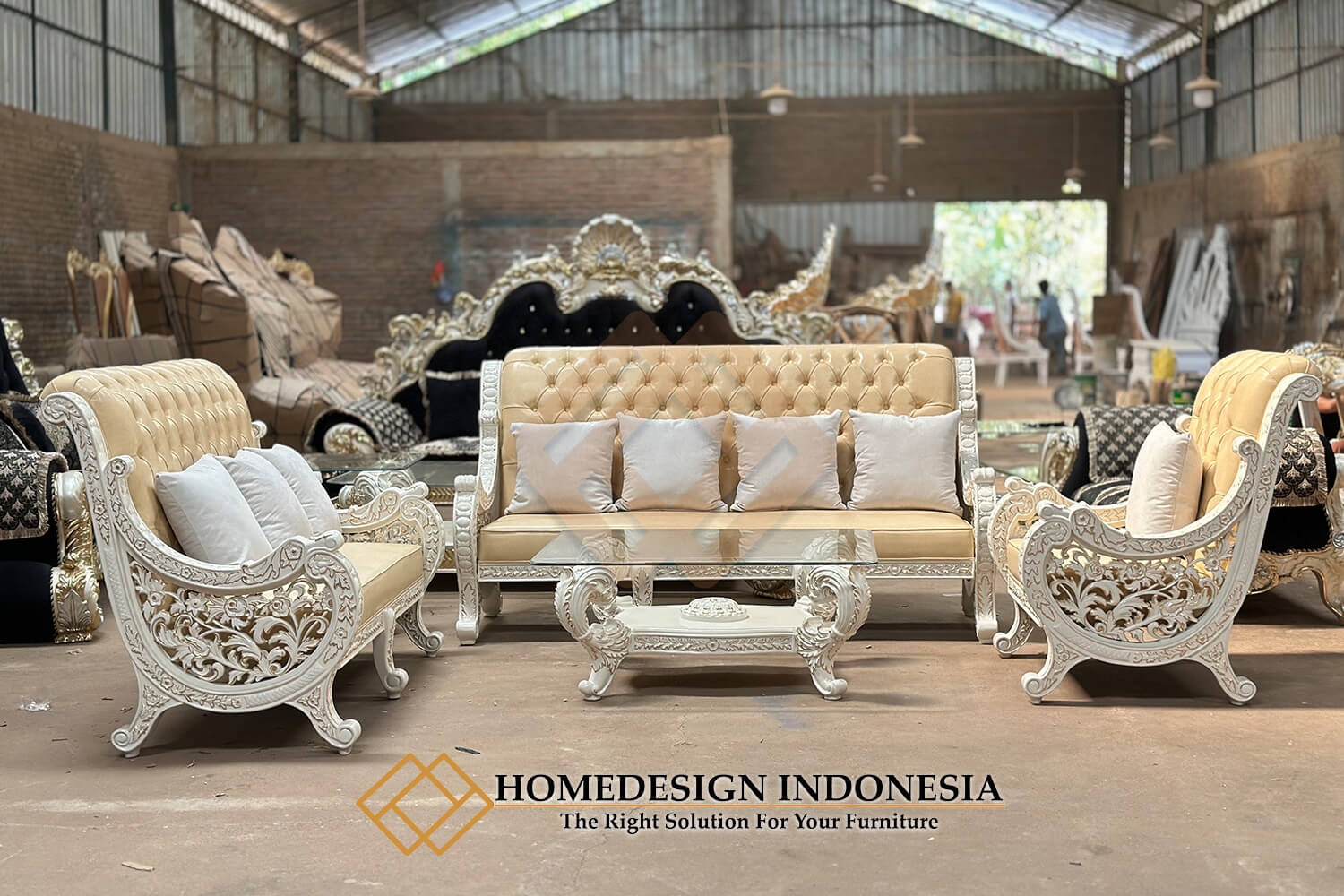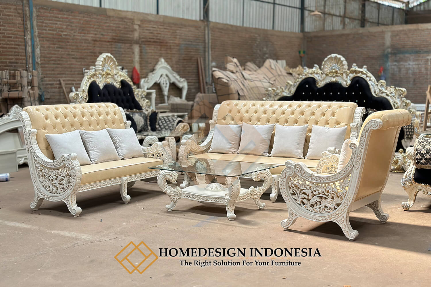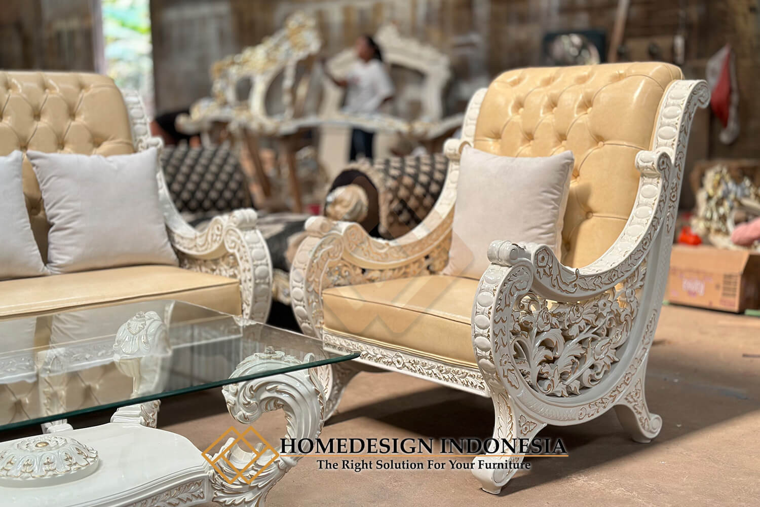 Sofa Tamu Mewah Klasik Jepara White Duco HD-1580