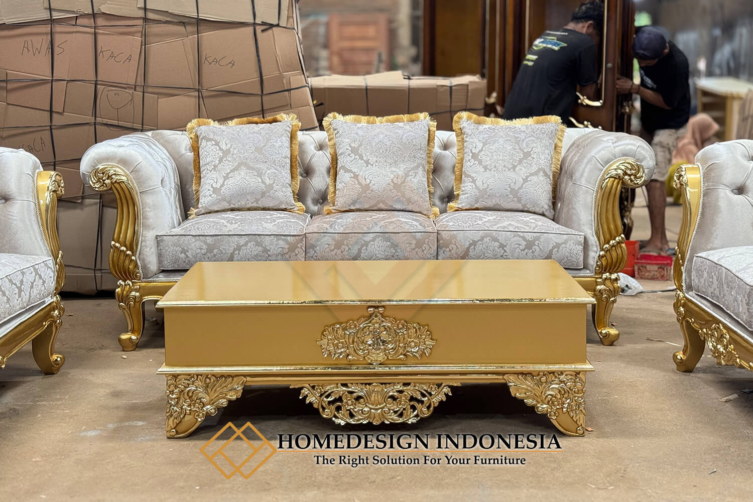 Sofa Tamu Mewah Ellena Luxury Carving Great Wood Quality HD-459