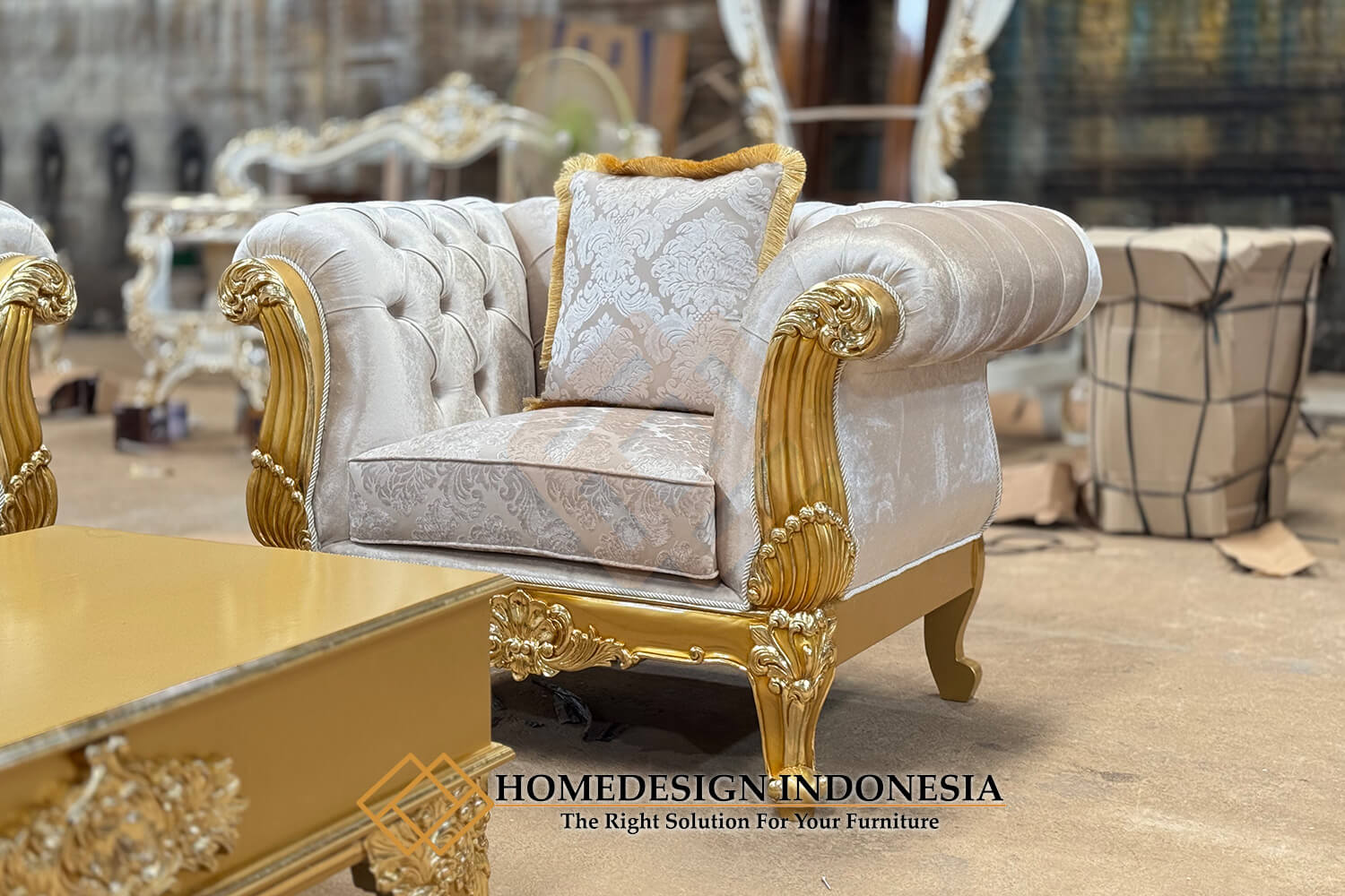 Sofa tamu mewah modern golden color HD-1584 dengan desain yang menawan akan menambah indah ruang interior anda.