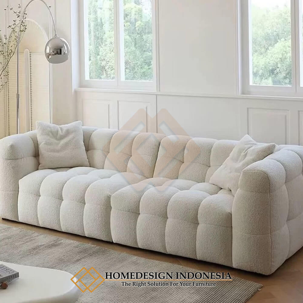 Sofa tamu minimalis 3 seater bubble style dengan desain yang elegant dan estetik akan memberikan kesan indah untuk interior anda.