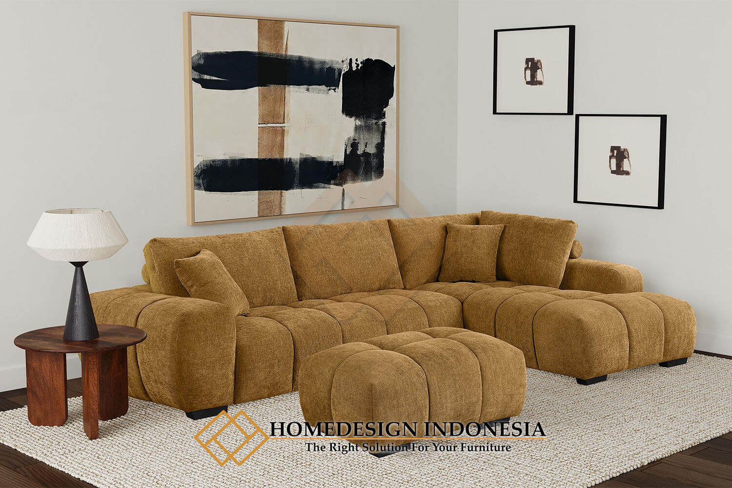 Sofa tamu sudut minimalis elegant bludru fabric color HD-1348 dengan desain yang menawan akan menambah indah interior anda.
